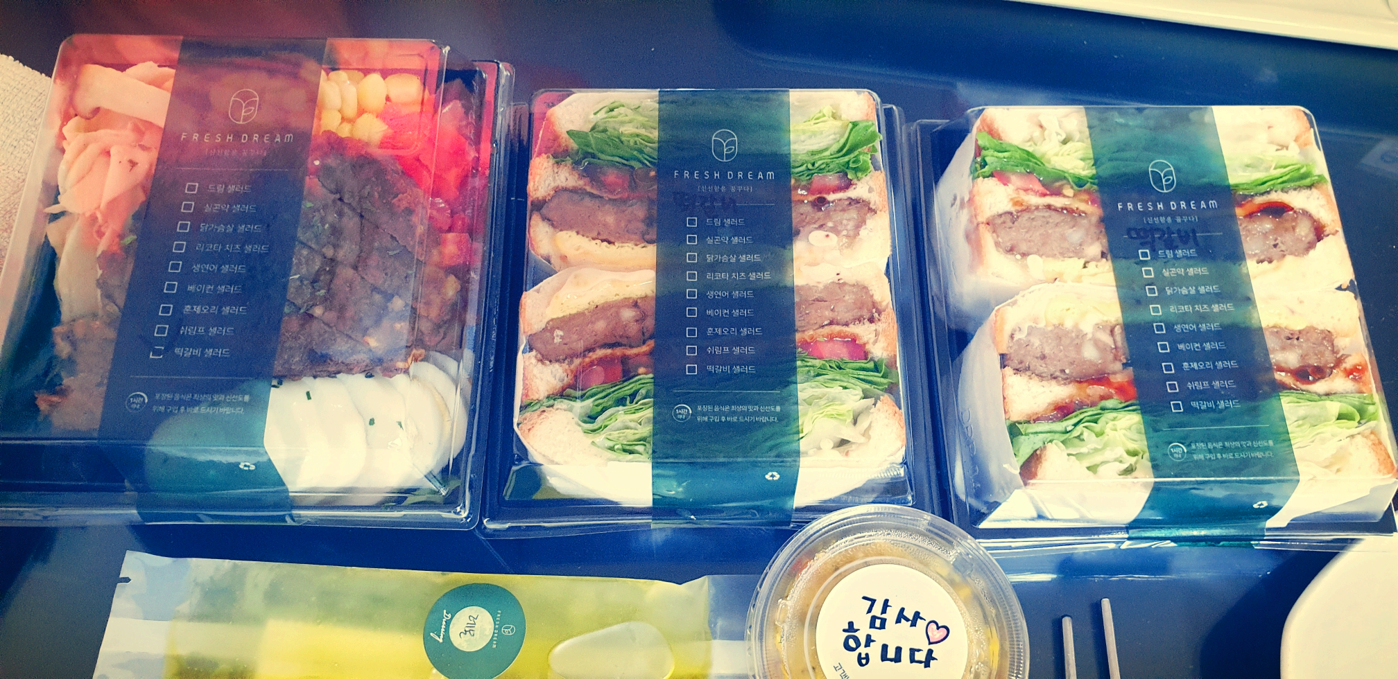 단골집 샌드위치 집에서 샐러드와 떡갈비 샌드위치를 시켜서 먹었어요.