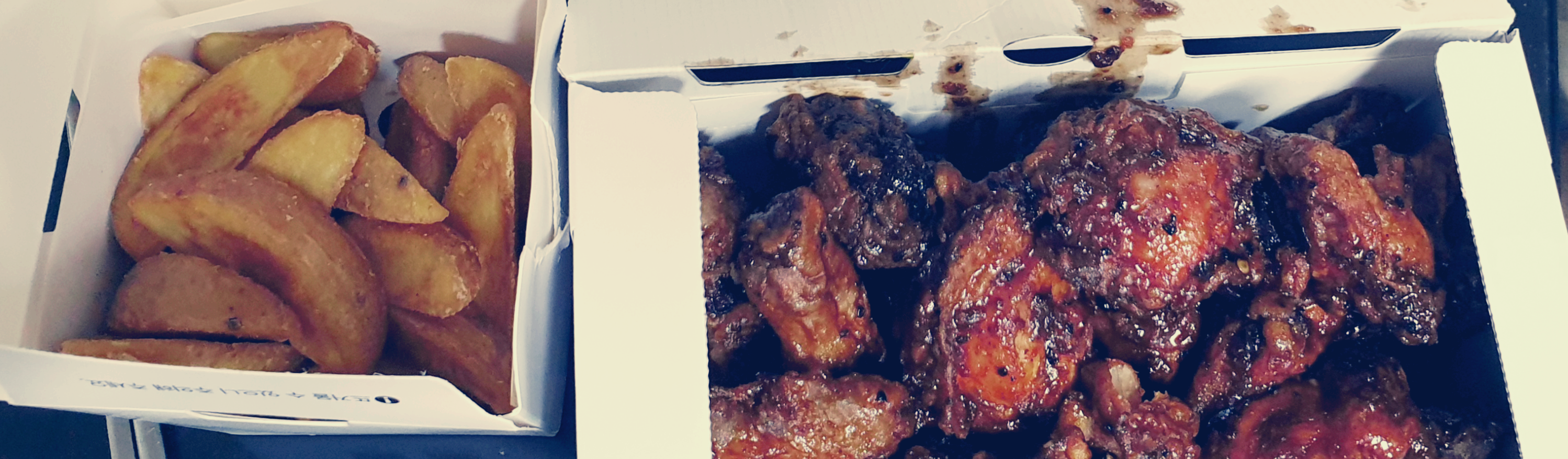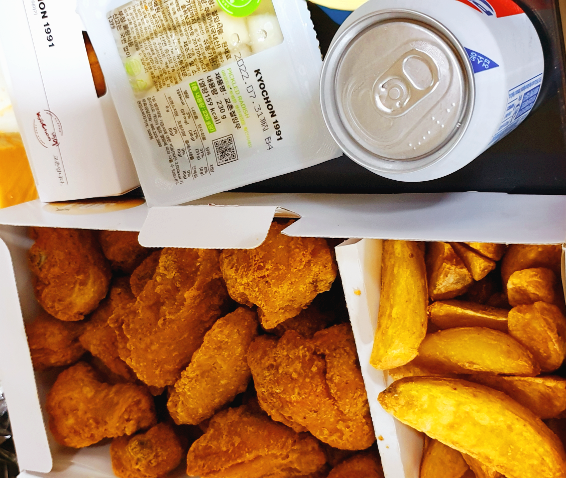 왼쪽은 교촌 라이스 세트, 오른쪽은 블랙 올리브 치킨이었나?