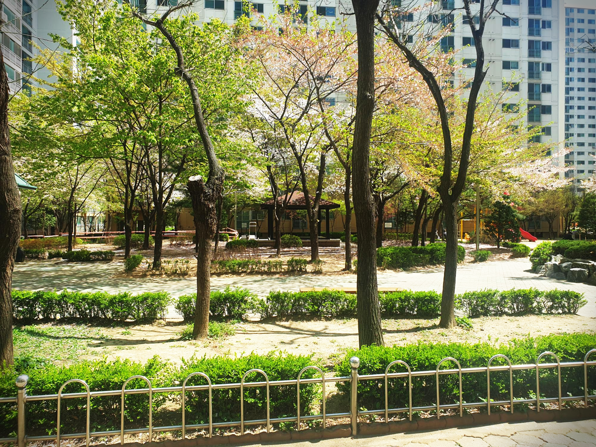 동네 아파트에서 찍은 벚꽃 풍경입니다.